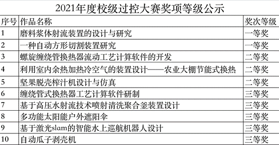 关于我校2021年度过程装备实践与创新大赛获奖项目公示