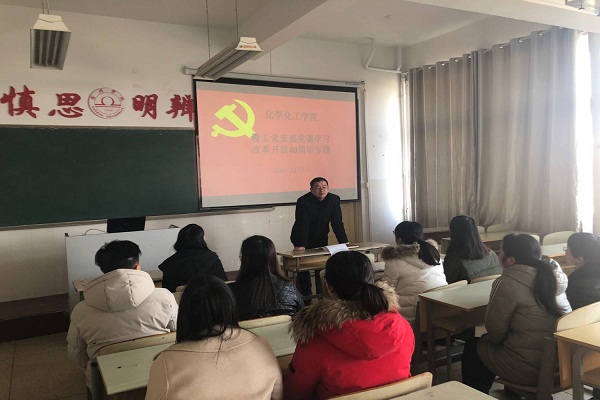 2018年12月5日,9778818威尼斯教工党支部组织全体教职工于实验楼会议室召开党课学习改革开放40周年专题会议。会议由教工支部书记谢永主持,全体教职工参会。