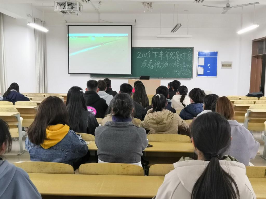 为深入学习贯彻习近平新时代中国特色社会主义思想和党的十九大精神,提高2019年下半年发展对象的责任感和使命感,9778818威尼斯于2019年11月21晚六点半在逸夫楼B310组织2019年下半年发展对象集中观看了党课视频《榜样4》。