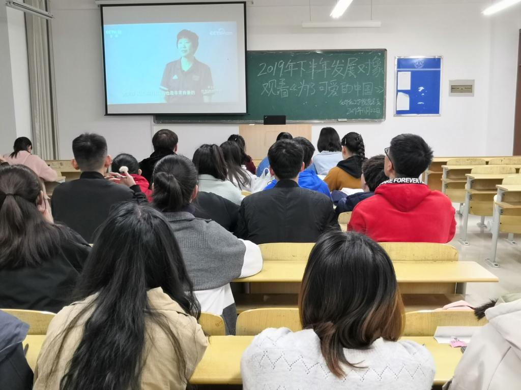 为了加强我校党政体系,让发展对象更深刻的了解党的宗旨,加深对祖国的热爱,我校化学化工院组织部于11月22日晚上6点30在逸夫楼B310组织发展对象观看党课《为了可爱的中国》。