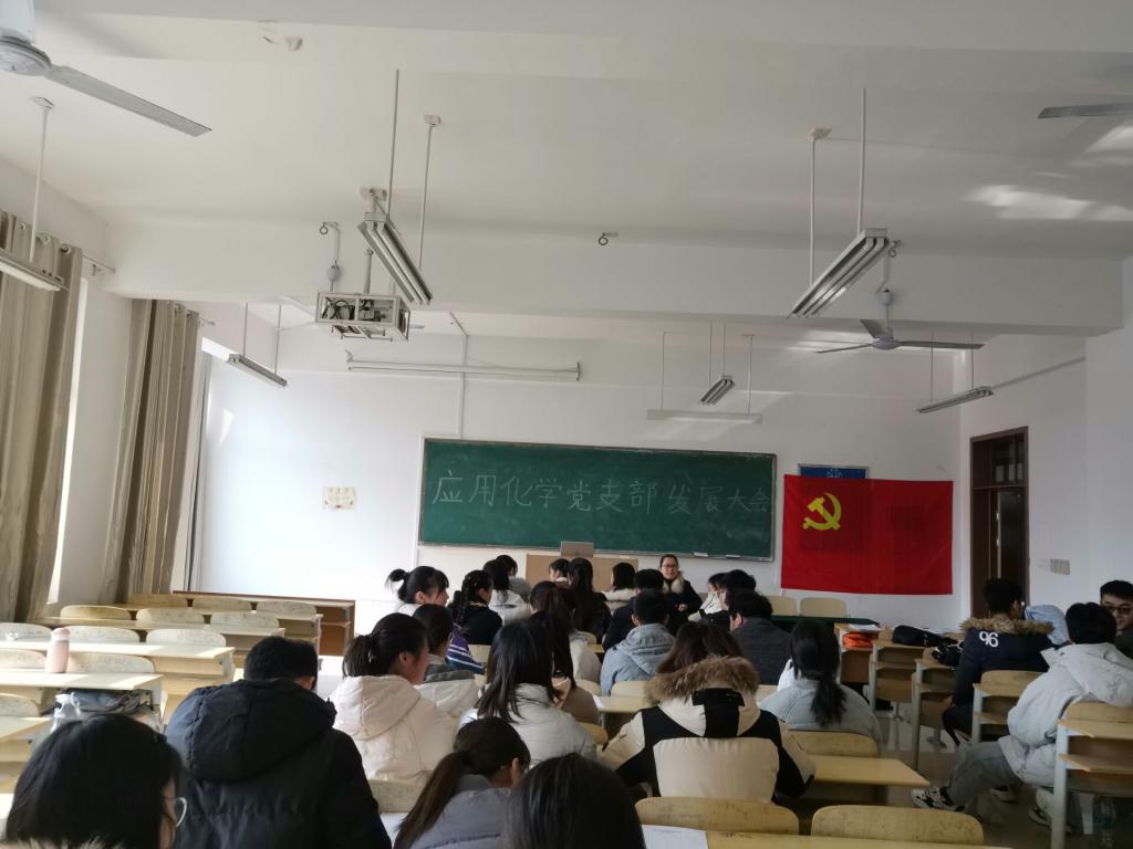 2019年12月6日应用化学党支部发展大会在逸夫楼B311举行,本次大会旨在吸纳优秀学生壮大党员队伍,为支部将来的发展打下坚实的基础。大会由应用化学党支部书记郭萍倩主持,参加此次大会的还有支部所有正式党员、预备党员和发展对象。