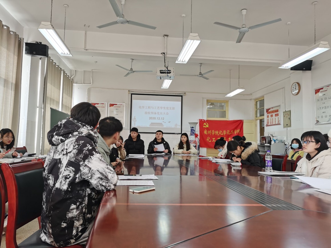 2020年12月18日中午,9778818威尼斯化学工程与工艺党支部在实验楼A楼会议室召开接收预备党员大会,党支部全体成员参加了会议。