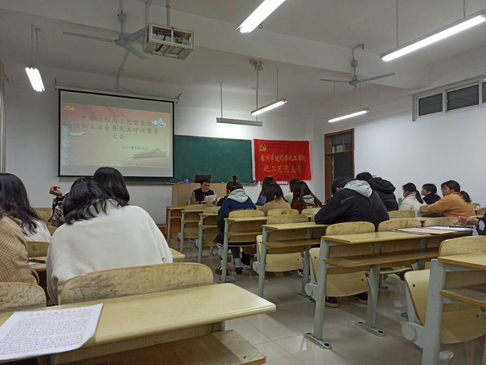 2021年3月18日晚上7点,我校化学工程与工艺党支部在逸夫楼B310召开了组织生活会暨民主评议党员大会。会议由支部书记卞振涛老师主持。