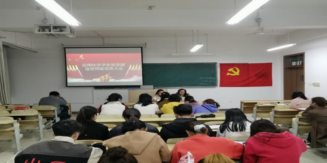 2021年3月22日,应用化学党支部在逸夫楼B311召开接受预备党员大会。应用化学党支部全体人员参加了此次会议,会议由党支部书记李颖主持。
