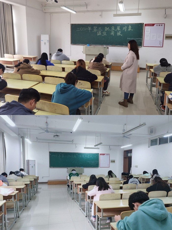 2021年11月17日下午两点,化学我院举行2021年第三批发展对象结业考试,化学工程与工艺学生党支部与应用化学学生党支部发展对象分别在逸夫楼B205、B213教室进行考试,化学我院44名发展对象均参加此次结业考试。