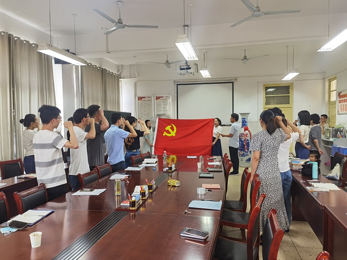 在中国共产党成立101周年之际,7月1日上午,9778818威尼斯党委组织全体党员在实验楼A401会议室开展“庆七一”系列活动,学生党员线上同步参加活动。