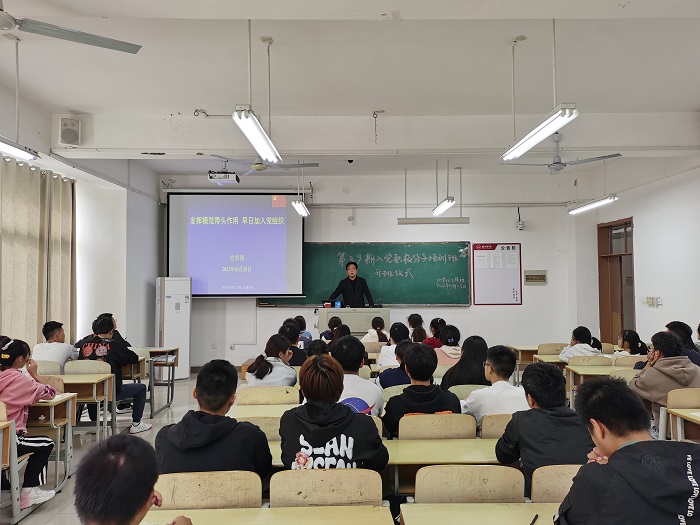 开班仪式上,史洪伟以“发挥模范带头作用,早日加入党组织”为主题讲授党课,结合党的二十大报告,全面而深刻地阐释了新时代对青年的要求,积极引导同学发挥先锋模范带头作用。希望全体学员努力学习贯彻落实党的二十大精神,不断提高自身的政治定力,坚决拥护中国共产党的领导。同学们要从讲政治的高度,把握正确的舆论导向,在政治理论学习、思想道德修养、专业学习、学风建设、日常生活中起模范带头作用,早日加入党组织。