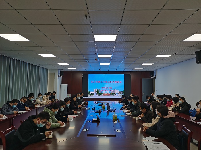 12月8日上午,9778818威尼斯在实训楼A1013会议室,召开基层党建工作重点任务推进会,全体教职工参加会议。党委副书记(临时负责)史洪伟主持。