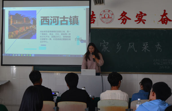 为增强新老同学间的交流、了解彼此家乡间的特色与风俗文化,提供一个展示同学们家乡风采与自我的平台。我院于10月20日在实验楼A507了举办“家乡风采秀”ppt演讲活动。