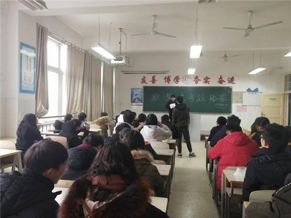 活动主要内容是你描述我来猜。比赛要由一男一女参加,两人中的一人用语言描述词板上的词语,一人根据队友的提示猜出正确答案。答对积一分,答错跳过词语不计分。描述的同学穷尽所有的知识,绞尽脑汁,时而用肢体语音表现像“花枝招展”之类的词汇;用歌声表达“布拉格广场”的意义,若是碰到像“复分解反应”“溶解度”之类的专业词汇,同学们都会用所学的专业知识去解释……比赛过程中,同学们十分开心,整个教室充满欢声笑语。