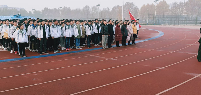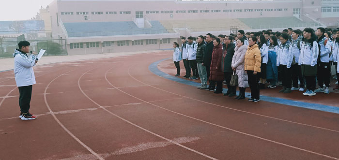 7点20分升旗仪式正式开始,现场随着仪仗队的出现而安静下来。在全体师生的注目礼下,英姿飒爽的国旗护卫队护送鲜艳的五星红旗进场,行礼完毕,伴随着庄严的《中华人民共和国国歌》,五星红旗冉冉升起,迎风飘扬。在场的每一个人向国旗行注目礼,深怀对祖国无限的热爱和崇高的敬意。接着党总支书记徐基贵在国旗下发表演讲,要求每位教师要扎实推进习近平新时代中国特色社会主义思想进教材、进课堂、进师生头脑,开展好“不忘初心、牢记使命”主题教育,要求学生上课时要做到“坐到前面来、手机收起来、头抬起来、笔记记起来”,努力学习报效祖国。紧接着学生代表屈少杰发表演讲表决心,他说到:作为新世纪的大学生,应该奏响自立的青春之歌,应该点亮希望的火种,面向现代化、面向世界、面向未来,应该报效祖国,接受新时代的考验,并为祖国创造更加辉煌灿烂的明天而奋斗!