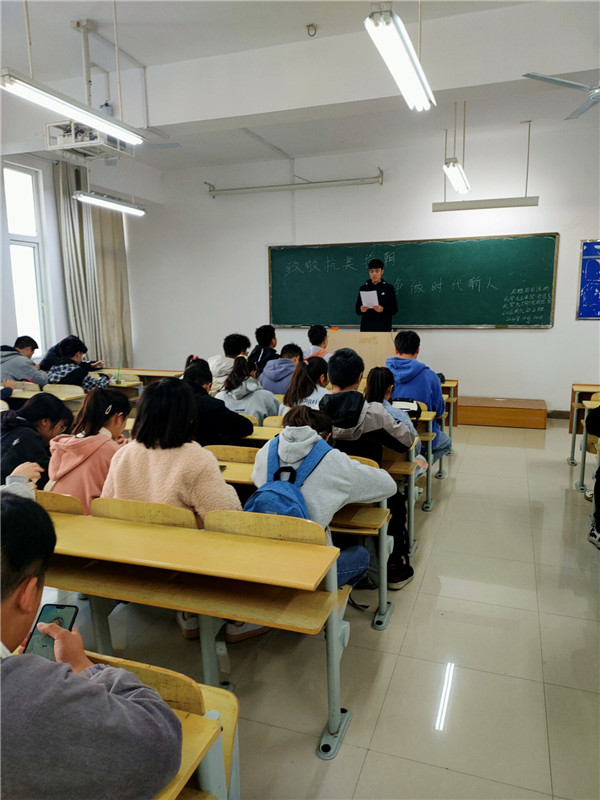 纪念中国人民志愿军抗美援朝出国作战74周年,传承和弘扬中国共产党和人民军队的革命精神,增强共青团员爱国主义信念,积极传播正能量,培养团员青年的爱国主义情怀。2020年11月20日,我校20应用化学二班举办“纪念抗美援朝,争做时代新人”主题团日活动,活动由团支书发起,20应用化学二班全体人员参与。