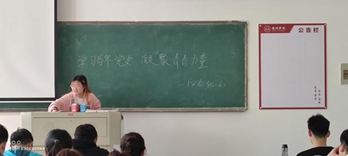 2021年4月23日,18应用化学2班学习百年党史,凝聚青春力量主题团日活动于我校逸夫楼进行。会议传达学习了中央、省委和校党委党史学习教育动员会议精神,要求学生把党的历史学习好、传承好、发扬好,做到学史明理、学史增信、学史崇德、学史力行,切实担当起新时代大学生的历史使命,为推进学院建设、实现伟大中国梦贡献青春力量。