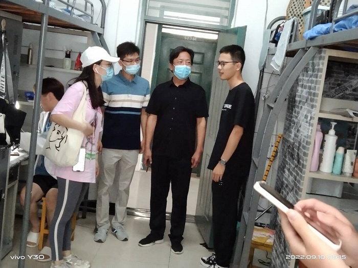 在走访过程中,史洪伟认真的询问同学了饮食、生活、学习、爱好等方面的情况,了解大家入学以来的学习和生活状态,特别询问了因疫情原因延缓返校的同学生活上是否适应、有什么困难。并勉励同学们珍惜友谊,把寝室氛围维护好,养成良好的行为习惯,注重身体健康,加强身体锻炼,要注意用电安全,同时调整好心态,尽快适应大学学习,并鼓励大家积极参加文体活动,开启健康充实的大学生活。