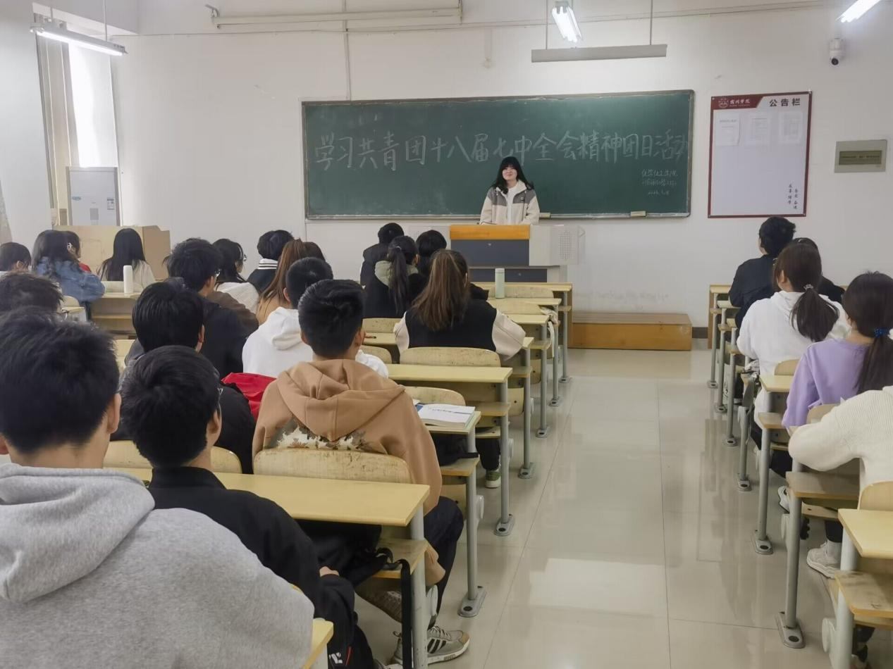 2023年1月13日至14日,共青团十八届七中全会召开,会议坚持以习近平新时代中国特色社会主义思想为指导,全面学习贯彻党的二十大精神,深入贯彻习近平总书记关于青年工作的重要思想。为深入学习共青团十八届七中全会精神,各班委围绕“学习共青团十八届七中全会精神”开展了主题团日活动。2021级应用化学2班在逸夫楼观看了共青团十八届七中全会相关视频,传达学习了《关于深入学习宣传贯彻党的二十大精神团结引领广大青年在全面建设社会主义现代化国家进程中建功立业的决议》文件精神,根据资料展开话题,同学们之间进行相互交流与讨论。为了使同学们对于共青团十八届七中全会精神有更进一步的认识,提升支部成员思想道德品质,坚定支部同学跟党走的信念。2022级过程装备与控制工程团支部举办学习共青团十八届七中全会精神主题团日活动。在学习会中,同学们集体观看共青团十八届七中全会,观后分组讨论,发表感想。通过此次主题团日活动使同学们立志做有理想、敢担当、能吃苦、肯奋斗的新时代好青年,使同学们坚定不移听党话、跟党走。让同学们明白青春逢盛世,奋斗正当时。