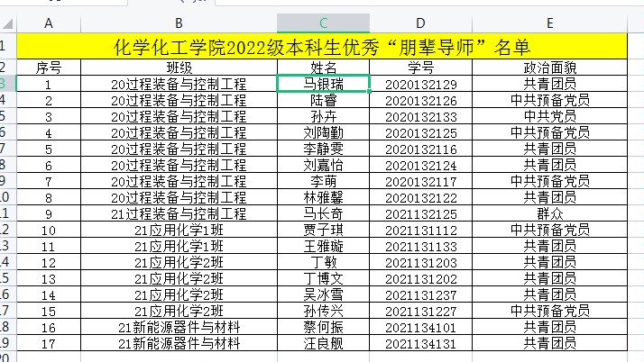 “优秀朋辈导师”,现将名单予以公示,公示期为
