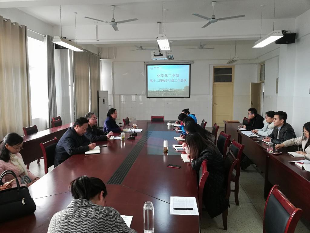 王红艳对近期教学行政工作进行了安排:校级教学督导听课及反馈情况;校级重点课程申报工作;应用化学、化学工程与工艺专业评估准备工作;教学基本状态数据采集情况;近期学生实习实训工作安排;2019年教学仪器设备参数上报;学院实践教学检查工作安排;科研项目申报准备工作;教师学术讲座完成情况;校级重点学科检查等工作。