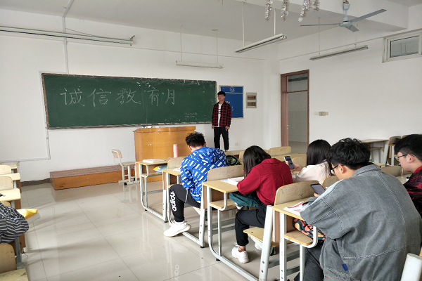 诚信是为人的基本准则,是同学们在现今的学习生活和将来踏入社会的工作过活中不可缺少的重要组成部分,人无信而不立,为培养学生观察、分析能力,为人处世与社会生活的能力以及明辨是非的能力,引导学生践约守信,诚实做人。2019年4月30日18级应用化学一班全体同学与辅导员张萍花老师在逸夫楼教室举行了关于“诚信教育月”的主题班会。