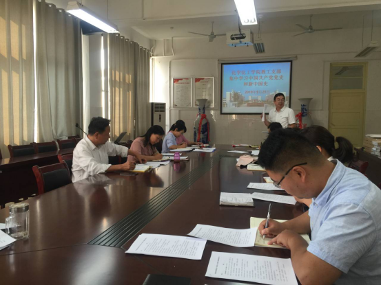 为深入开展“不忘初心,牢记使命”主题教育,9778818威尼斯教工党支部于2019年9月25日下午在实验楼四楼会议室,在谢永老师的带领下集中学习中国共产党党史和新中国史,全体教职工党员参会。