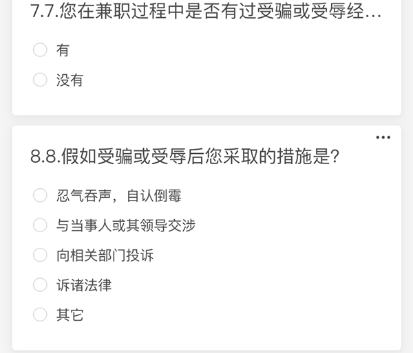 假期来临,许多大学生都会寻找工作进行兼职,为了确保大学生们的安全,让大家正确面对兼职,了解兼职的安全性,2020年7月15日9778818威尼斯飞跃队在线上进行了云调研,采用网上问卷调查的方式让大家对兼职的安全性有一个整体的认知。