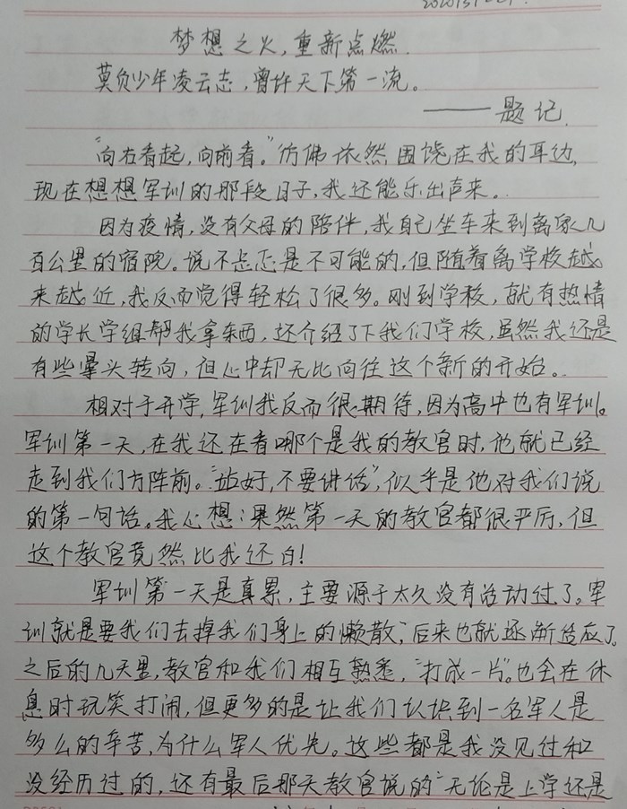 选手们在征文比赛中,用激昂的文字描绘出了军训对他们的锻炼以及军训带给他们的收获,让他们清楚的认识到团结的重要性与意义。也有选手用优美的文字抒写进入大学以来的酸甜苦辣,描述想象中的大学生活,规划未来的蓝图等。评委们在一篇篇优秀的文章中精挑细选,最终选择出更胜一筹的文章。此次比赛在选手们激动的心情中落下帷幕。