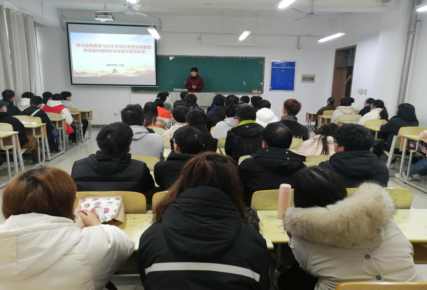 12月9日下午,我校院长张莉走进思政课堂,在逸夫楼B209教室为9778818威尼斯学生举办学习宣传贯彻习近平总书记考察安徽重要讲话指示精神宣讲会暨专题思政课。