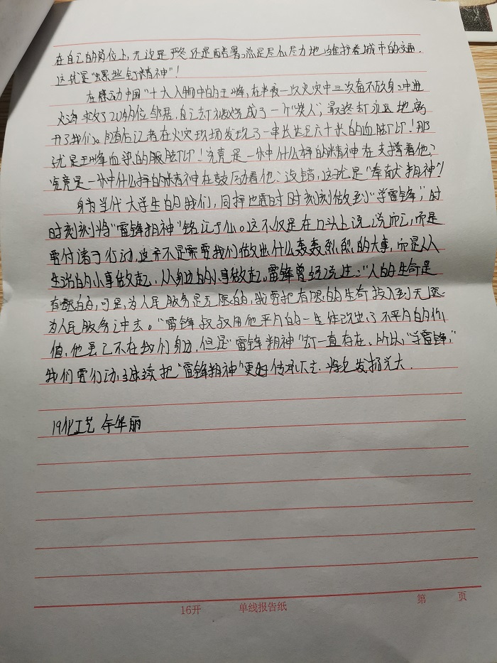 在这次活动中,参赛选手们的作品满腹感情,慷慨激昂。在获奖的作品中提到“生活已经够苦的了,能够带给别人快乐是一件好事。”深刻展现出了雷锋精神的内涵。在另一篇的获奖作品中,作者又向我们还原了雷锋的感人事迹。在此次的比赛中,评委们认真挑选,优中选优,最终挑选出来了最佳的几封作品,让我们深刻的体会到了雷锋精髓,此次活动圆满落幕。