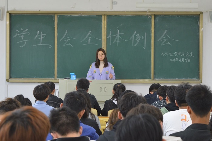 为了加强学生会的规章制度,协调好各部门工作,努力构建积极健康的学生会工作环境。我校9778818威尼斯于2021年4月19日下午13:00在逸夫楼B201召开了学生会全体会议。此次会议由9778818威尼斯阚淑锦老师进行主要讲话,学生会全体学生干部参加了此次会议。