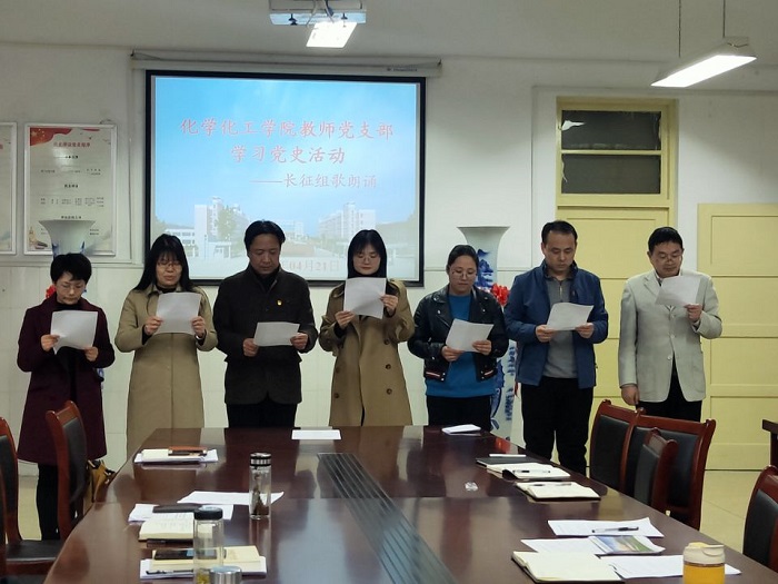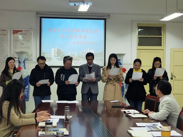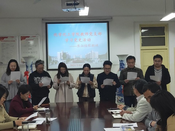 根据我校3月16日召开的2021年全面从严治党工作暨党史学习教育动员部署会议精神和应化与新能源教工党支部的党史学习计划安排,4月21日下午在9778818威尼斯会议室,应用化学与新能源教工党支部开展了长征组歌朗诵活动。