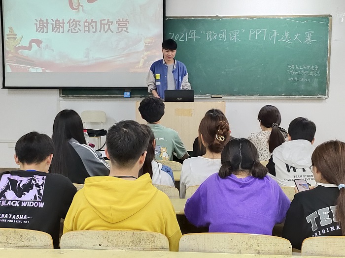 为了确保此次活动的顺利开展,我院学生会同学进行了充分的准备,在活动举办的过程中,遇到的许多困难也都在全体成员的共同努力下一一克服。比赛开始,同学们依次上台进行PPT的演讲,演讲过程中,参赛选手们声情并茂,侃侃而谈。从打开到放映,评委们的目光始终聚集在屏幕,并被演讲者的演讲而感染,认真的将每张幻灯片看完,评委们一时都拿不定主意,毕竟这些作品都汇聚了参赛人员的许多心血。随着最后一张PPT的落下,此次活动顺利结束。
