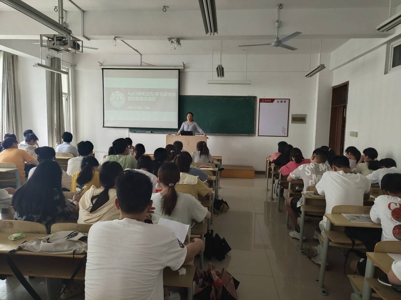 2021年6月11日下午14:009778818威尼斯张娜老师在逸夫楼B310作了题为“AgCl纳米立方/多孔碳纳米管的制备及表征”的学术讲座。