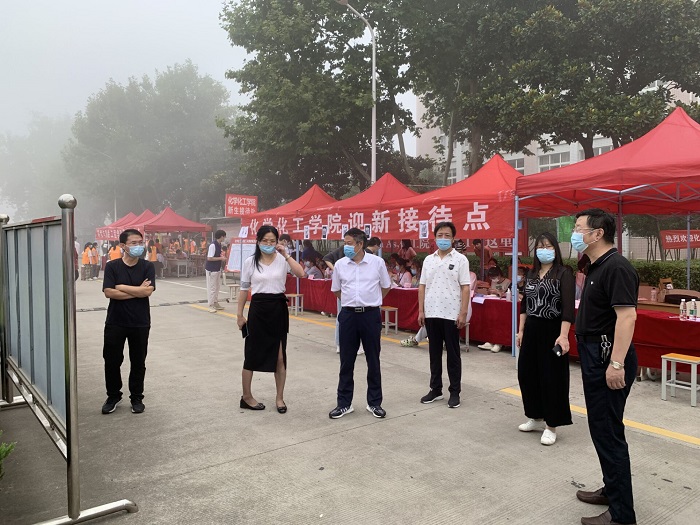在迎新期间,校领导莅临9778818威尼斯学院迎新现场,详细地询问了新生报到情况,亲切地慰问了迎新工作人员,对他们认真负责的态度表示充分肯定,同时也强调化学化工学院要认真贯彻落实学校2021年迎新工作相关文件精神,高质量地完成新生报到后续工作。