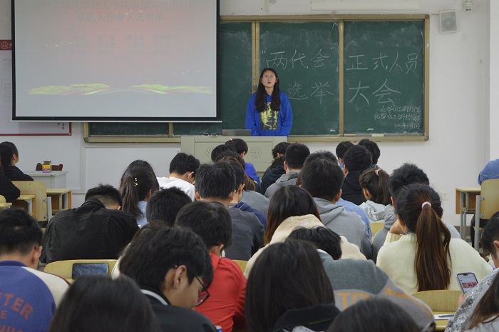 此次活动的首先由候选人进行三分钟的自我介绍,由评委进行投票选出最合适的学生代表及共青团员代表。在这三分钟内,候选人不仅介绍了自己两年的成绩情况,也展现了对胜任职位的能力、特长和经验。本次活动评委人数众多,分别来自于不同班级的团员,足以看出学生们对于活动的重视以及高昂的积极性,同时也确保了投票的公平公正。阚老师指出,学生代表和共青团代表是学院与同学们沟通的桥梁,是学院民主建设事业中至关重要的一环,希望学生代表们能担起重任,切实履行好为同学们服务的义务。这次的活动不仅锻炼了学生的勇气和决心,也对学生日后的发展及对未来的规划有着重要的作用。最终,“两代会”选举仪式在选票上交后宣告结束。