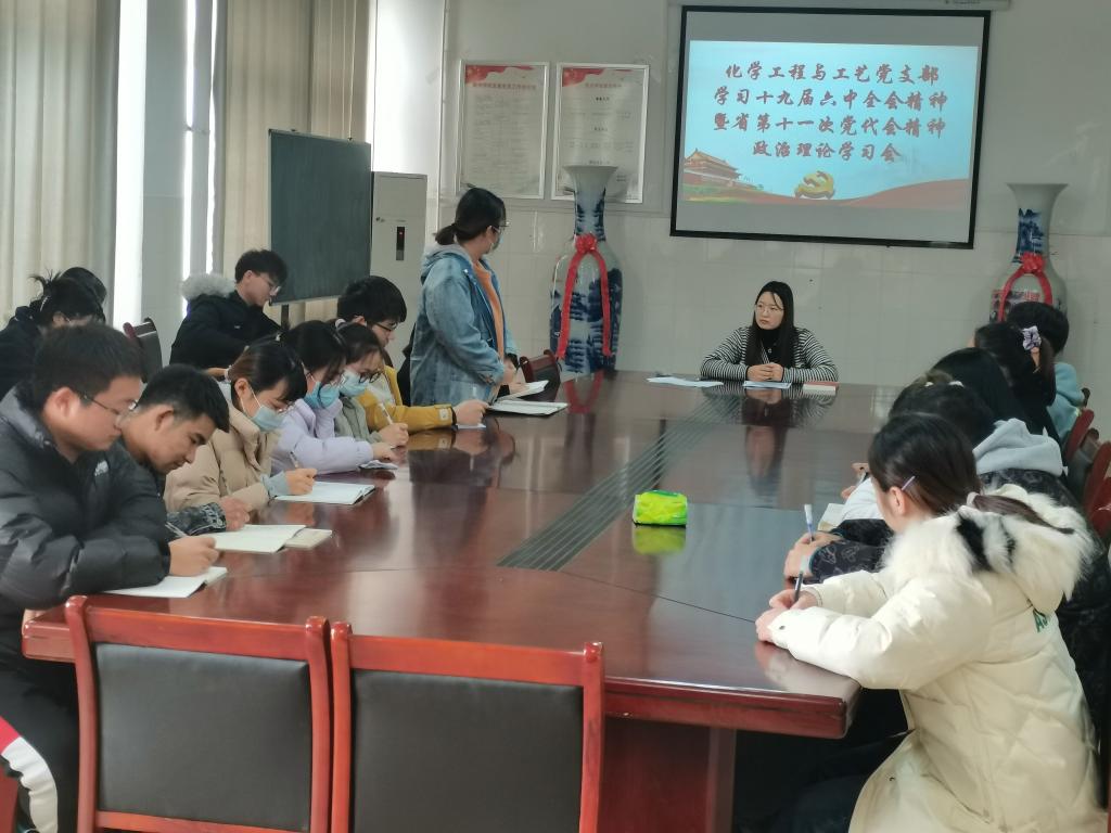 为深入学习党的十九届六中全会精神和安徽省第十一次党代会精神,提高学生政治思想素养。11月28日,化学我院组织优秀学生代表在实验楼A401室开展“党的十九届六中全会精神和安徽省第十一次党代会精神政治理论学习会”,本次会议由学生党支部书记阚淑锦主持。
