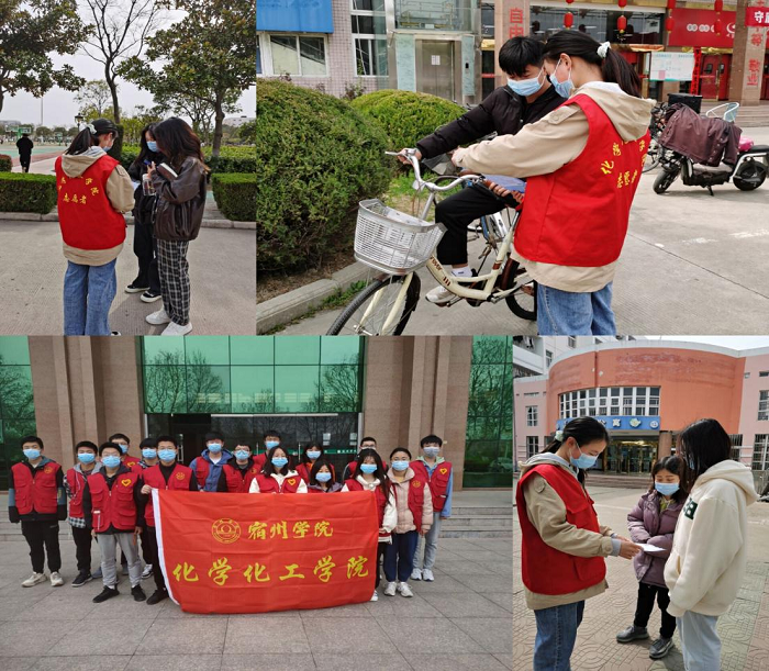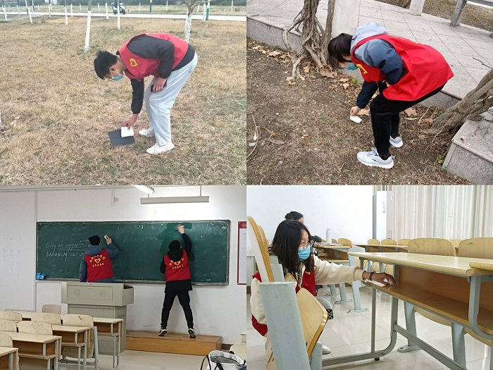 坚持党员带头、志愿先行。党员志愿者以两人为一组分别组成“疫情防疫宣传志愿队”“就餐秩序维护志愿队”和“校园环境清洁志愿队”“校门口外防输入志愿队”开展一系列校园防疫、校园安全、校园环境保护工作。志愿者们身穿志愿服或佩戴志愿者袖章,自觉正确戴好口罩,驻守在二冬大道、逸夫楼、教学楼、食堂的出入口,精神饱满、分工协作,微笑引导、文明劝导。分发“防疫小课堂”科普传单300份,提示学生“非必要不外出”、减少外卖、减少网购、戴口罩、勤洗手、一米线的重要性;呼吁大家保持良好心态、消除焦虑恐慌、积极抗击疫情;引导学生自觉遵守校园防疫规定。活动过程中格外注重疫情防控,除了避免人员聚集外,坚持做到“一米线”标准。