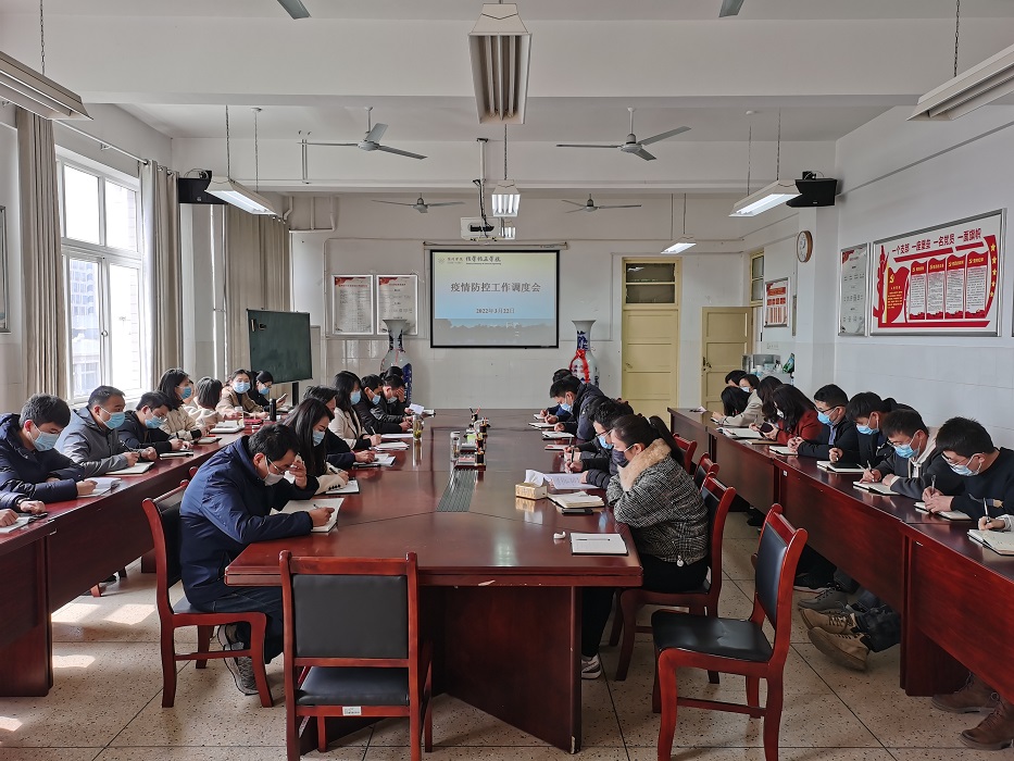 3月22日中午,9778818威尼斯在实验楼会议室召开了疫情防控工作调度会议。会议由党委副书记(临时负责)史洪伟主持,全体教职工参加会议。