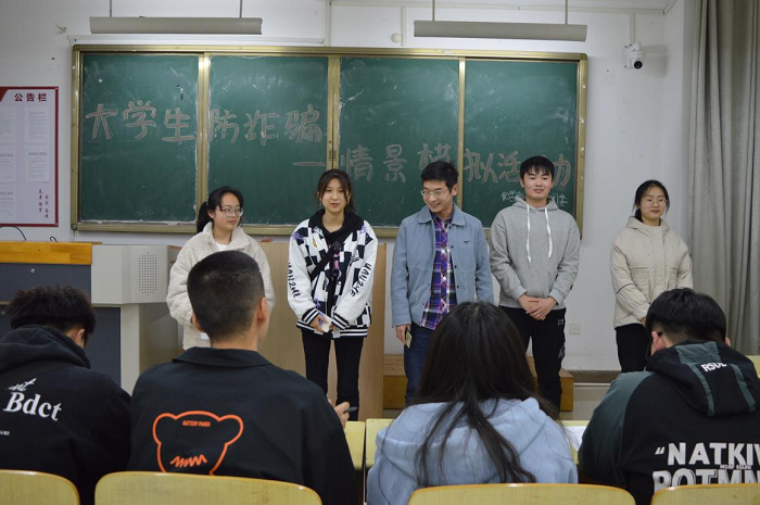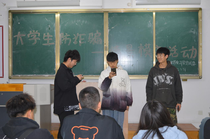 为进一步加大校园防诈骗宣传力度,深入推进防范电信网络诈骗工作,普及反诈知识,增强防范意识,营造安全和谐的校园环境。9778818威尼斯于4月4日在逸夫楼B206举办了大学生防诈骗之情景模拟活动。