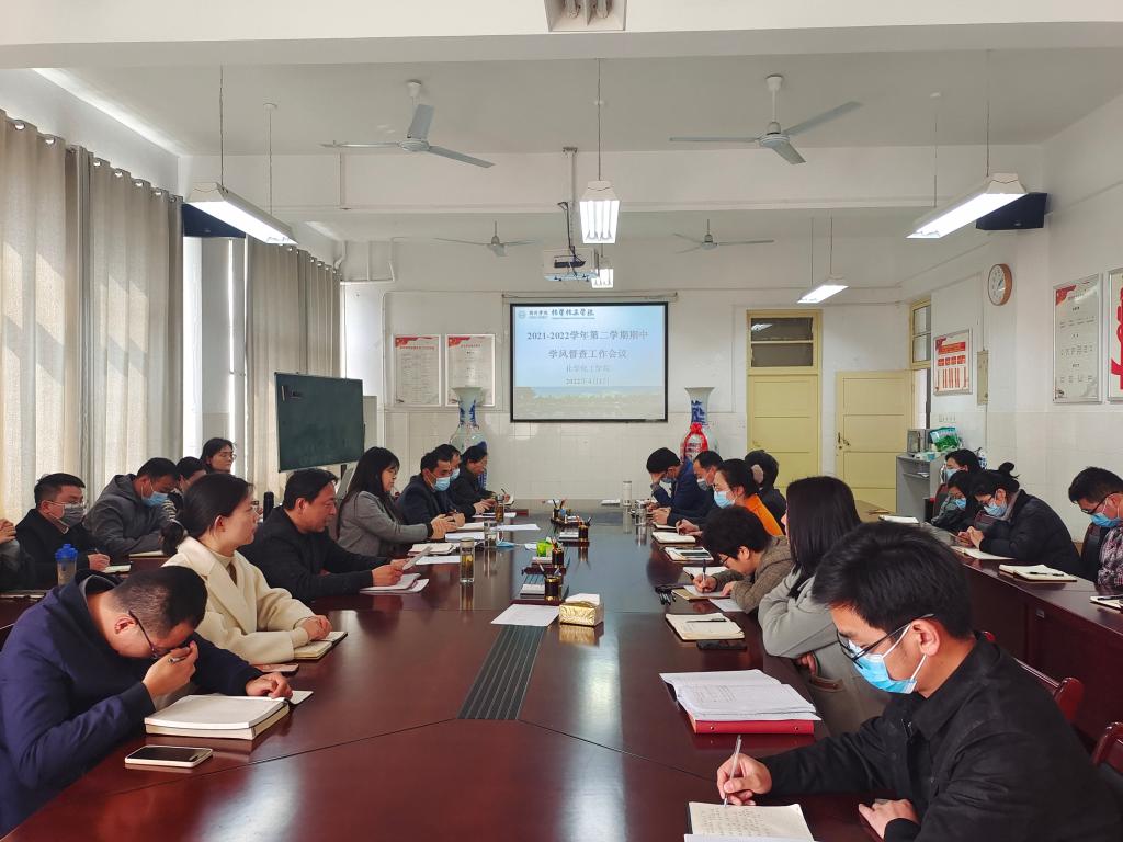 为进一步加强学风建设,推进“三全育人”试点改革高校建设,结合辅导员“三进”工作,深入班级听课、看课、查课,了解学生上课状态,营造良好学习氛围,9778818威尼斯于4月6日召开2021-2022学年第二学期期中学风督查工作会议。会议由党委副书记(临时负责)史洪伟主持,全体教职工参加。
