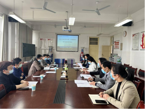 为进一步落实学校学风建设通知工作会议精神,全面加强和改进学生学风建设。4月13日上午,学校学风专项督查工作小组李月云一行赴9778818威尼斯开展2021-2022学年第二学期期中学风建设督查工作,9778818威尼斯党委副书记(临时负责)史洪伟、院长卓馨、党委副书记刘茜、副院长王聪、副院长张克营,部分科级干部及全体辅导员参加会议。