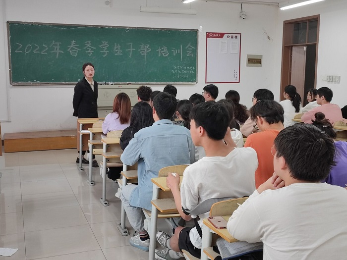 为加强学生干部队伍建设,增强学生干部的综合素质,从而更好地服务师生,9778818威尼斯于4月19日下午,在逸夫楼B206召开“我为青年办实事”之2022年春季学生干部培训会。本次会议由9778818威尼斯分团委书记(代理)阚淑锦主持,各班团支书以及学生会全体干部参加。