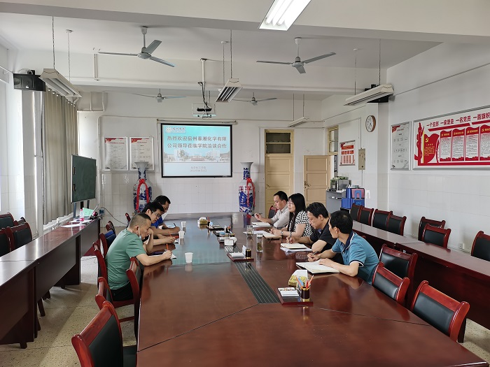 卓馨首先对宿州春潮化学有限公司一行人的到来表示热烈欢迎,随后介绍学院专业设置、办学特色、科研方向、博士师资力量及校企合作开展情况,表达了与企业可以从学生实习就业和产品研发等方面进行合作,实现双赢。