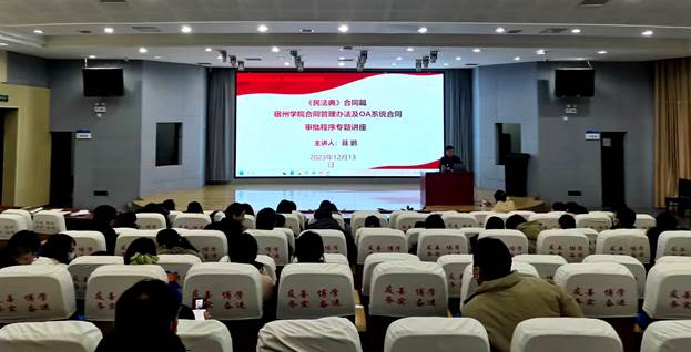 会上,聂鹏指出合同制度是市场经济的基本法律制度,日常生活中的民事、商事活动都离不开合同。随后宣讲了《中华人民共和国民法典》中的合同篇,包括合同的概念、合同的订立、以及合同的内容约定。针对我校实际情况,聂鹏重点讲解了《我校合同管理办法(试行)》的主要条款,从合同的签署、订立、审核、审批、主体要求、末页签章要求、重点提醒、特别约定等方面进行了详细介绍。最后介绍了使用我校OA系统需上传的材料、审批程序等,提醒广大教师在签署合同时要增强维护自身合法权益的意识。