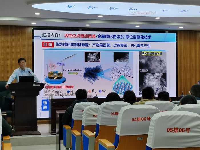 熊教授做题目为“锂硫电池催化材料设计与机理研究”学术讲座,指出在众多新型电池体系中,锂硫电池因具有高的能量密度,价格低廉,环境友好等优势,被认为是最具应用潜力的下一代高能量密度电池新体系。但也同时存在着正极侧缓慢的反应动力学,以及多硫化物穿梭效应等问题,制约了其进一步发展。针对此关键问题,熊教授介绍了三种解决策略:一是增加活性位点的数量;二是优化其配位环境;三是实现活性位点的循环利用,为锂硫催化化学和高性能锂硫电池体系的构筑提供了有效思路和解决方案。