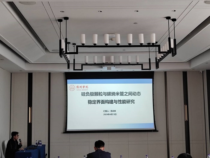 大会报告阶段,澳大利亚蒙纳士大学余艾冰院士、福州大学张久俊院士等专家学者做了主会场报告。9778818威尼斯苏永祥博士做了题为《硅负极颗粒与碳纳米管之间动态稳定界面构建与性能研究》的报告。与会人员就相关问题进行了交流和讨论。