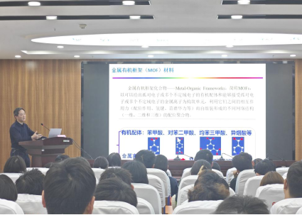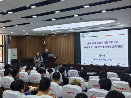 卓馨对郑和根教授的莅临表示了热烈欢迎。郑和根教授首先介绍了研究背景,强调了发展锌-空气电池技术以解决日益严重的能源短缺及环境污染等问题重要意义。指出锌-空气电池以其低成本、高能量密度、环保和令人满意的安全性被认为是最有前景的绿色电化学储能和转换装置之一。讲座中,郑教授详细阐述了MOFs材料在电催化领域的应用潜力。他指出,MOFs具有可调节的孔径大小和超高的比表面积,这使得它们在催化反应中具有独特的优势。同时,郑教授还分享了研究团队在MOFs的二维材料、复合材料及其衍生物等领域取得的一系列研究成果和经验。