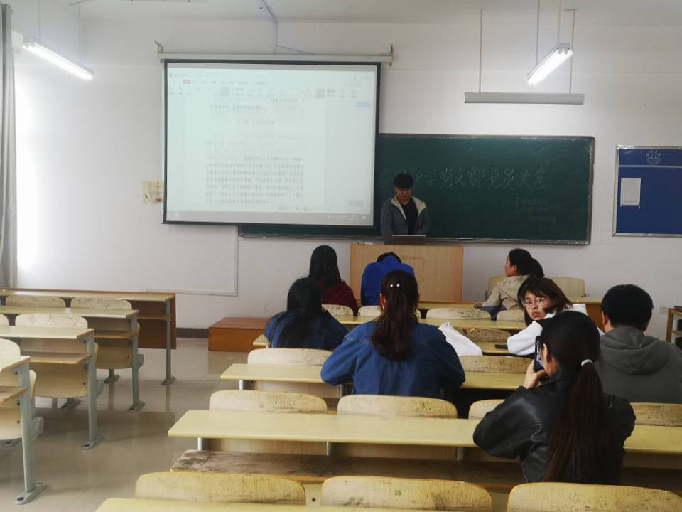 2019年10月14日,应用化学党支部的党员在逸夫楼b311召开了集中学习党章党规的会议,会议由郭萍倩老师主持,以集中学习党章党规为主题,给党员们讲解了有关党章党规的相关知识。