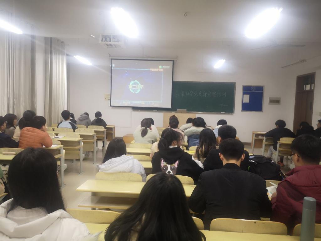 2019年11月25日,应用化学党支部组织全体预备党员及积极分子在逸夫楼b311观看“主持人大赛”。这次党课培训旨在更好地激发党员的实践能力。