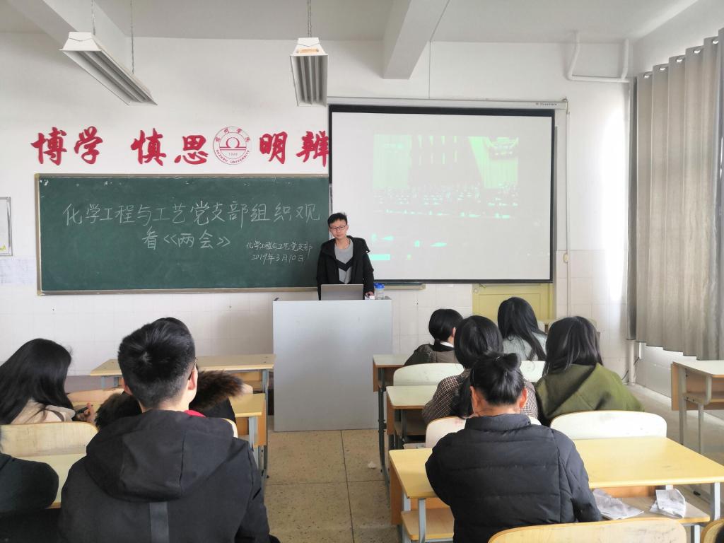 2019年3月6日,化学工程与工艺学生党支部在实验楼a406 教室集中观看了“两会”报道,并结合自身工作学习生活讨论两会热点议题。