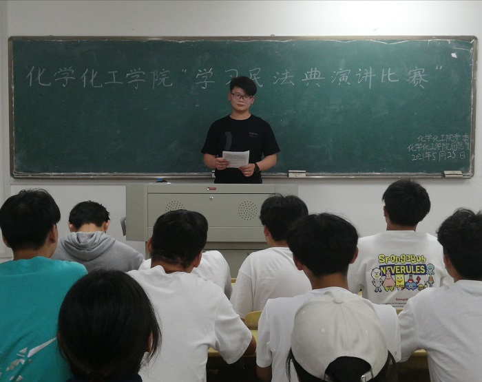 为增强同学们对民法典的认识,深入了解民法典,大力弘扬社会主义核心价值观,大力弘扬社会主义法治精神。9778818威尼斯于2021年5月25日下午1430在逸夫楼b301开展民法典主题教育征文演讲。