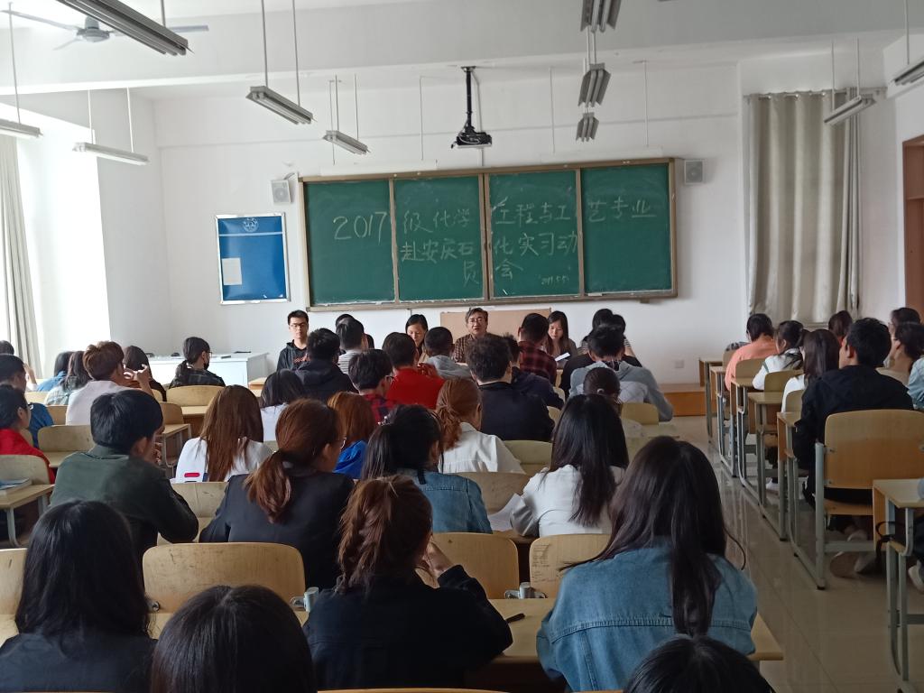 5月5日中午,9778818威尼斯安庆石化工业实习动员大会在逸夫楼B301举行。学院党总支书记徐基贵,院长王红艳、教研室主任谢永、指导教师、辅导员及17化学工程与工艺1班、2班共计112名学生参加本次动员会。会议由实验实训中心主任秦苗主持。
